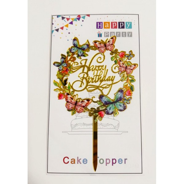 Топпер "Happy birthday” цветочный №8, акриловый пластик.